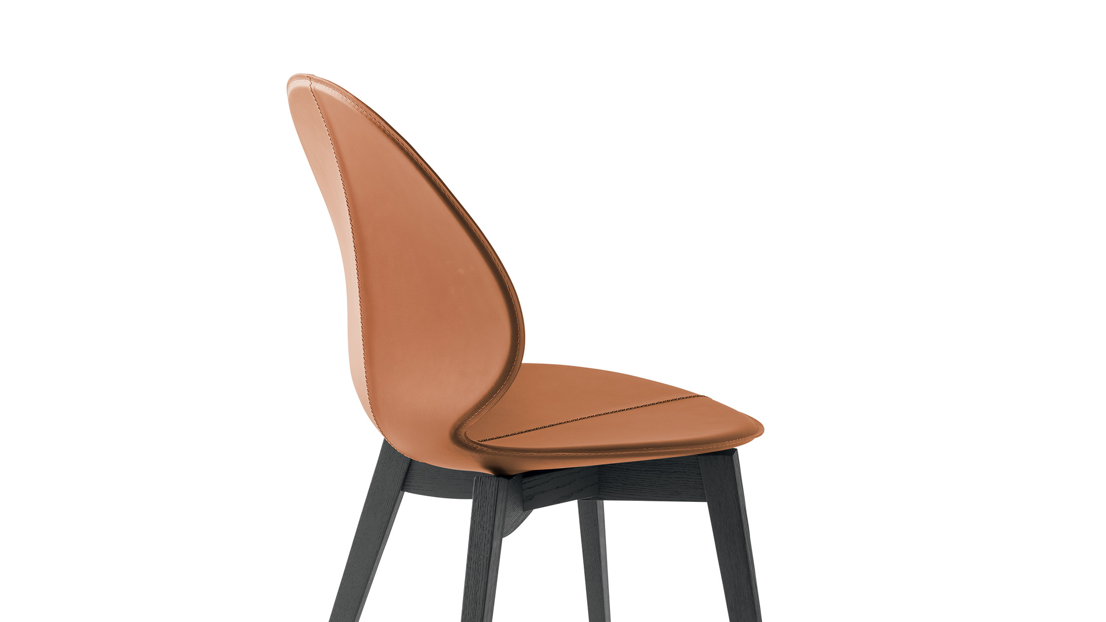 Calligaris Basil, regenerated leaf -shaped CHAIR with outer seam. Wooden beech base. Available in many colors.