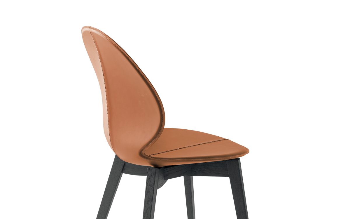 Calligaris BASIL, καρέκλα από αναγεννημένο δέρμα σε σχήμα φύλλου με εξωτερική ραφή. Ξύλινη βάση οξιάς. Διατίθεται σε πολλα χρώματα.
