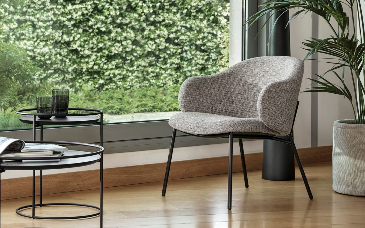 Πολυθρόνα Holly by Calligaris. Διατίθεται με μεταλλικό σκελετό σε μεγάλη ποικιλία υφασμάτων και δερμάτων. Ο σκελετός της κατασκευάζεται σε matt black, black nickel, polished brass(χρυσό), matt bronze.